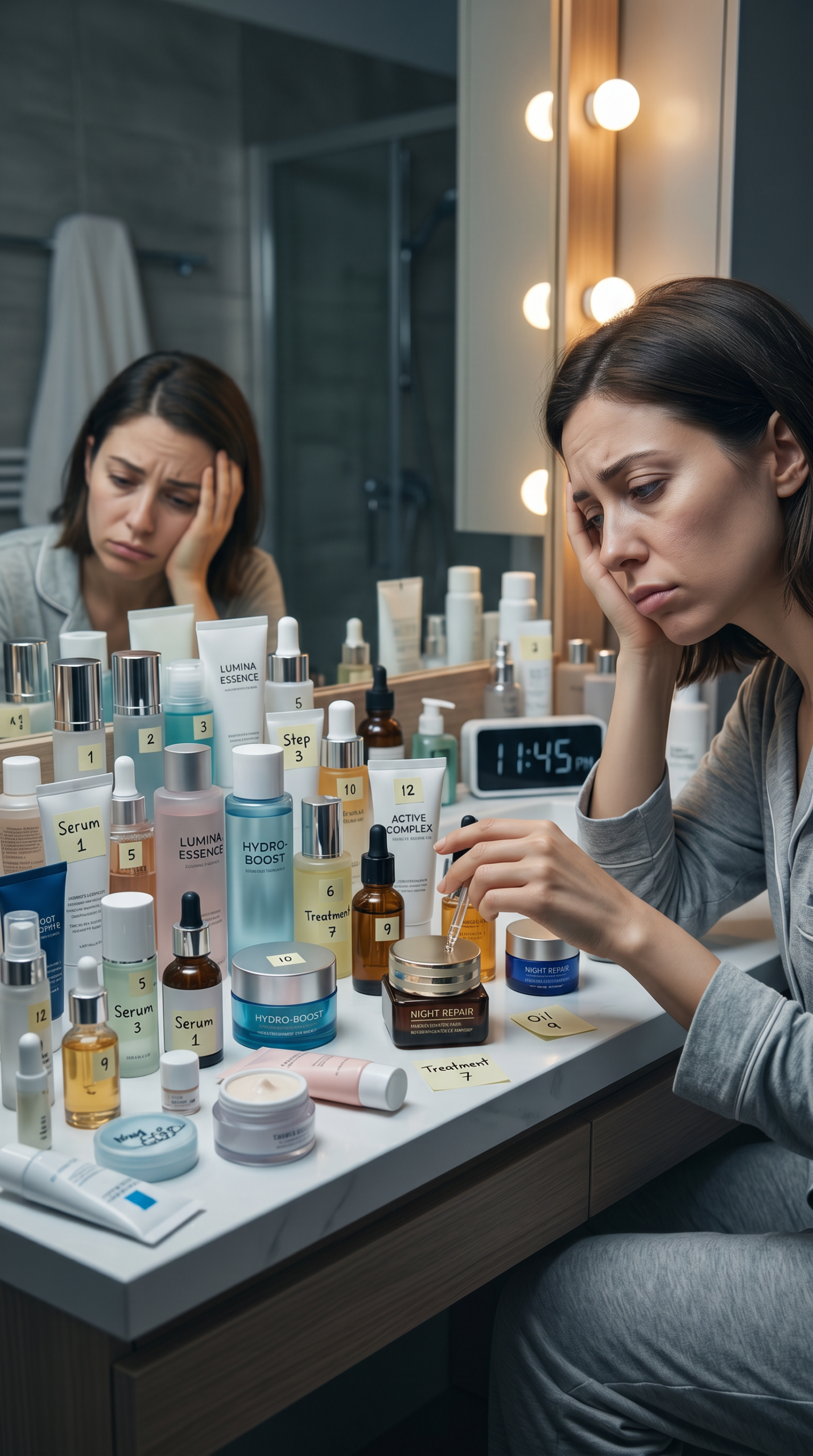 深夜十一點半,你拖著疲憊的身軀回到家,看著化妝台上一字排開的瓶瓶罐罐,心裡突然升起一股無力感。