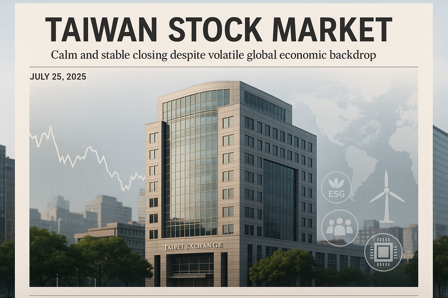 台股今日(2025年7月25日)表現平穩,收盤變動不大,顯示市場情緒謹慎而穩定
