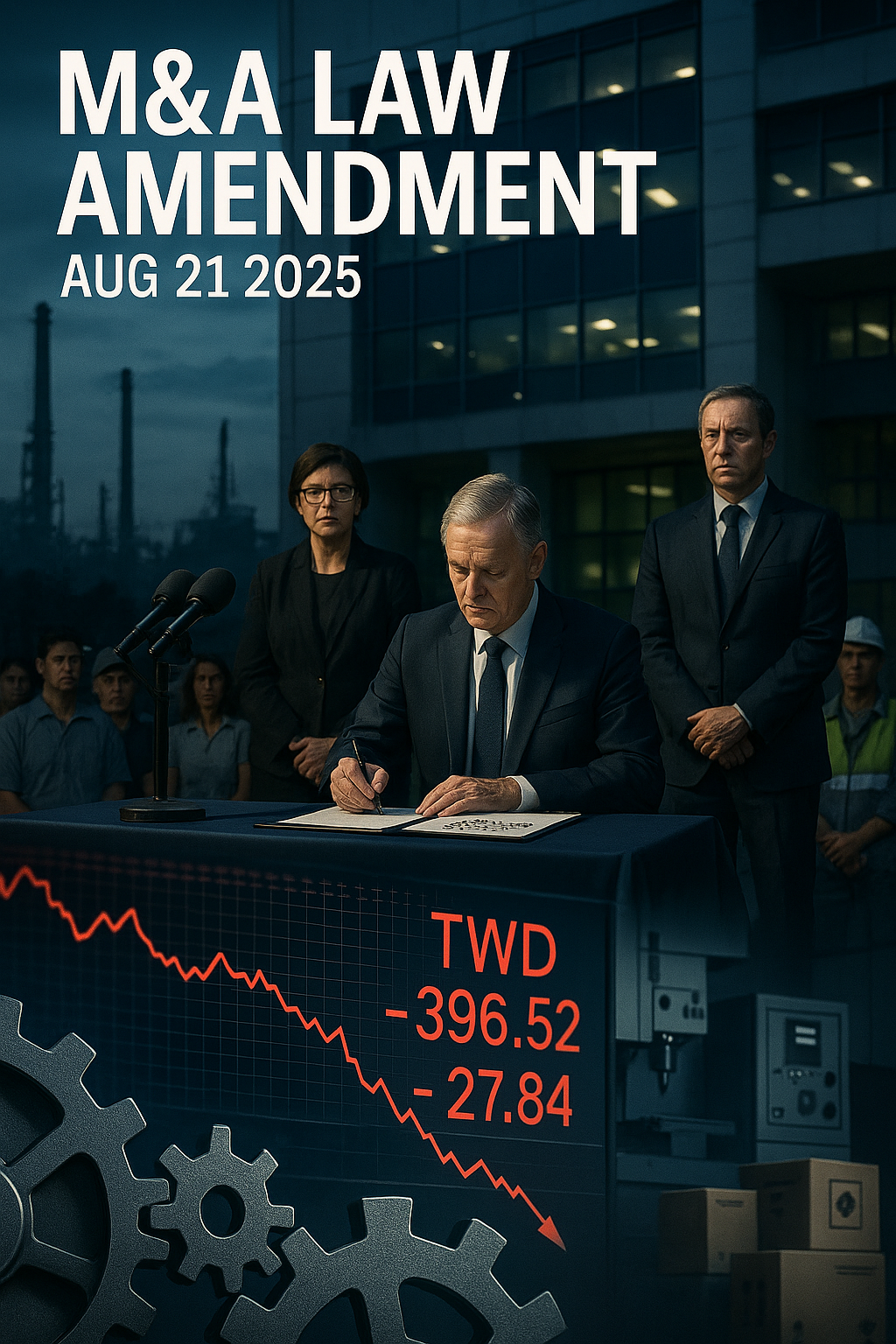 行政院於2025年8月21日通過企業併購法修正草案,目標五年內協助成立約15家產業控股公司,並擬給予稅務等誘因以促進產業整合。
