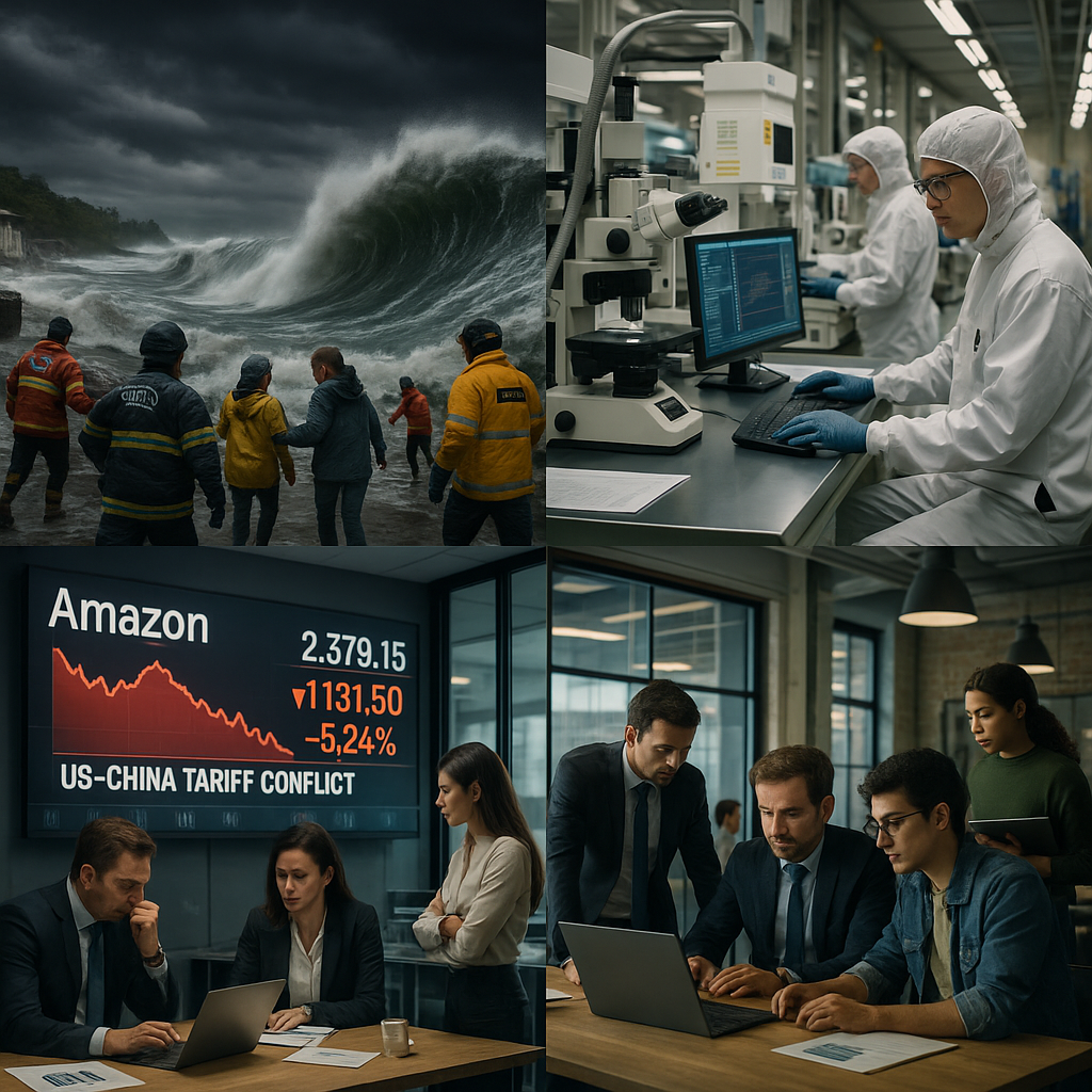 結語來看,地震海嘯警報突顯全球氣候與地緣環境脆弱,而亞馬遜財報折射美中關稅爭端與全球消費變化的複雜局面。從中山半導體學院投資計劃到新北積極應對措施,再到台灣青年勇於轉型創業,我們看到一條科技與韌性雙軌並進的路。面對科技與經濟的動盪,唯有持續強化創新能力,調整心態迎接挑戰,台灣才能在全球浪潮中持續前行。