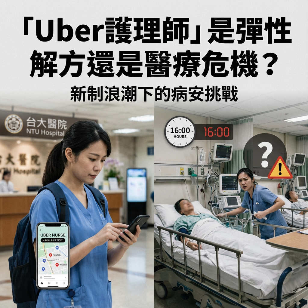 想像一下,一個個身影穿梭在不同醫院的走廊,她們身穿護理師制服,卻不屬於任何一個固定病房,就像叫了「Uber」一樣隨叫隨到。這不是科幻電影,而是台灣醫療現場正悄然興起的「Uber護理師」現象。2024年6月27日,聯合新聞網報導指出,儘管衛福部暫緩了護理人員在地方公會辦理執業登記的新制,但台大醫院、雙和醫院等龍頭醫院已開始聘用部分工時護理師。這股「彈性」的浪潮,究竟是緩解護理人力荒的甘霖,還是暗藏病人安全的風暴?