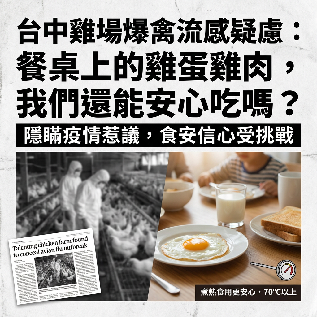 清晨為家人準備早餐,煎顆荷包蛋、烤片吐司,再配上杯熱牛奶,是許多台灣家庭再熟悉不過的日常風景。然而,當新聞報導傳來某地禽流感疫情的消息,尤其是當地點近在眼前,例如「台中」,許多人心中難免會浮現疑問:我昨天才買的雞蛋還能吃嗎?市場上的雞肉會不會有問題?這份不安,如影隨形地滲入我們的餐桌,讓原本單純的飲食選擇,變得複雜起來。