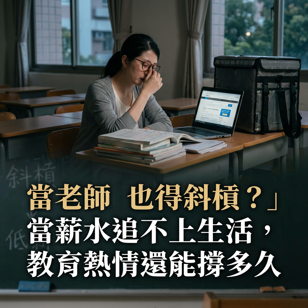 為什麼全教總的這聲呼籲,會讓這麼多人有感?或許是因為,這份無奈感,早就瀰漫在各行各業中。無論是工程師、設計師,甚至是新聞工作者,誰不是在下班後偷偷規劃自己的「副業」?當社會新鮮人起薪停滯,而房租、物價卻像坐火箭般往上衝,曾經的「單一收入」模式,早已難以支撐現代生活。老師,作為我們下一代的引導者,當他們也需要為了五斗米折腰,我們的社會又該如何去衡量「教育」這項無價的投資?這事件反映的,不僅是教師個人薪資問題,更是整個社會對於「專業」與「價值」的重新審視。我們期待老師春風化雨,傳道授業解惑,卻是否提供了足以支撐這份熱情的物質基礎?當老師們心力交瘁地在課餘時間打工兼職,他們還有多少餘裕去精進教學、關懷學生?
