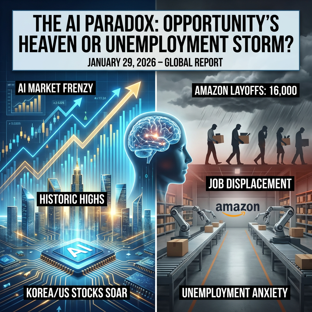 2026年1月29日,全球科技巨頭亞馬遜宣布將進行全球裁員1.6萬人,部分職位明確將由人工智慧(AI)取代。同一時間,在AI熱潮的推波助瀾下,韓國股市市值已躍升全球第十,而美國科技股更持續因AI題材屢創新高。這股看似充滿機會的AI浪潮,為何同時帶來了市場的狂熱與就業的焦慮?這究竟是機會的天堂,還是即將席捲而來的失業風暴,值得我們深入探討。