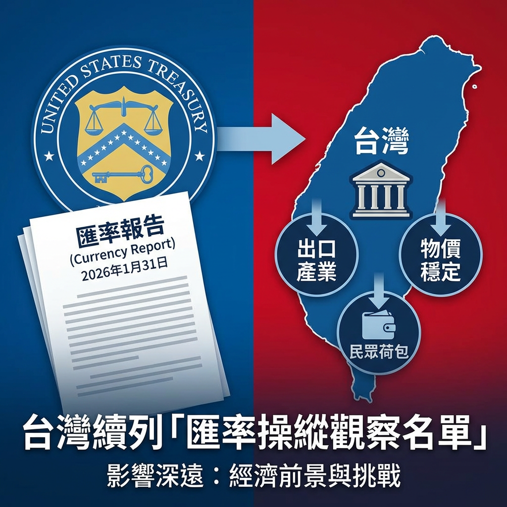 美國財政部於2026年1月31日發布最新匯率報告,台灣再次被列入「匯率操縱觀察名單」,此消息一出,立刻引發市場高度關注。這不單是國際金融數據的表象變動,更深遠地牽動著台灣出口產業的命運、國內物價的穩定性,乃至於每個民眾的荷包與整體經濟前景。