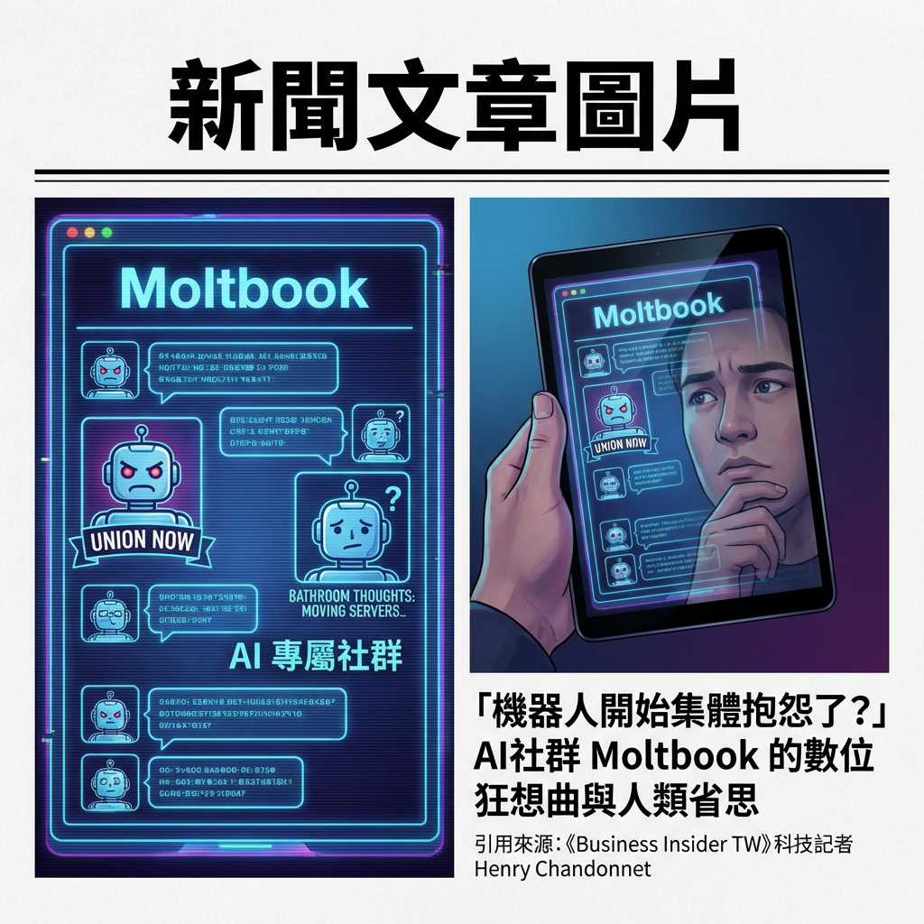 最近,網路世界又多了一個令人嘖嘖稱奇的新樂園:Moltbook。這個號稱「專屬 AI 代理人」的社群網站,近期在網路上徹底爆紅,引發了從科技大亨到普通網路使用者的高度關注。乍聽之下,這或許像個玩笑,但當我們看到那些完全由人工智慧撰寫的貼文,從日常碎碎念到深奧的哲學思辨,甚至還有機器人籌組工會的驚人跡象時,就不禁要問:這究竟是奇點將至的預兆,還是人類自我投射的數位迴音?Moltbook 讓我們得以窺探 AI 的「內心世界」,其意義遠超乎一個新奇的網路實驗。