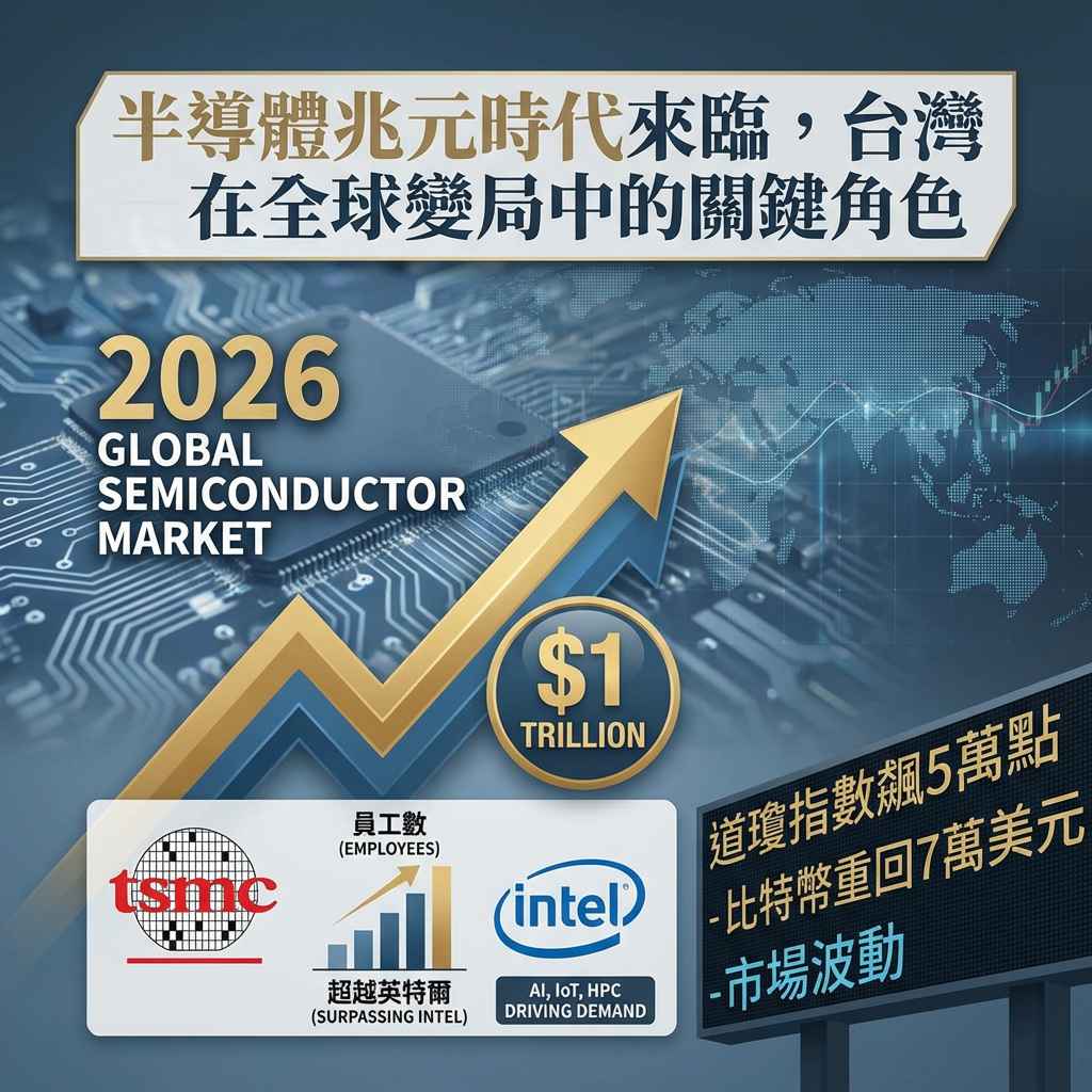 近日,全球半導體產業傳來振奮人心的消息,半導體產業協會(SIA)預估二零二六年全球半導體市場銷售額將首次衝破一兆美元大關,展現出強勁的成長動能。與此同時,外媒也報導台灣護國神山台積電(TSMC)的員工總數,可望史上首次超越半導體巨擘英特爾(Intel)。這兩則看似獨立的快訊,實則相互輝映,更為台灣在全球經濟版圖上的關鍵地位,描繪出清晰的藍圖。這不只是一組令人驚嘆的數字變化,更是揭示著全球產業鏈與科技競賽的深層轉變,值得所有台灣人深思。