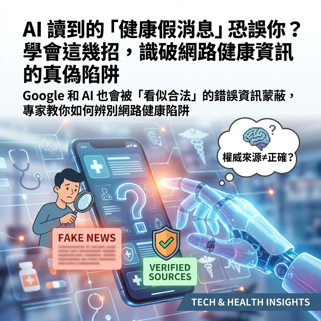 打開手機,我們習慣向 Google 提問,向 AI 尋求解答。從「感冒吃什麼好得快?」到「這種新療法有效嗎?」,AI 彷彿成了我們的私人健康顧問。然而,當我們放心地將健康疑問交給 AI 時,是否有想過,連 AI 也可能被「假消息」誤導,進而傳遞錯誤的健康觀念給我們呢?這聽起來可能有些令人不安,但它卻是現代資訊社會中,我們必須正視的一個新挑戰。
