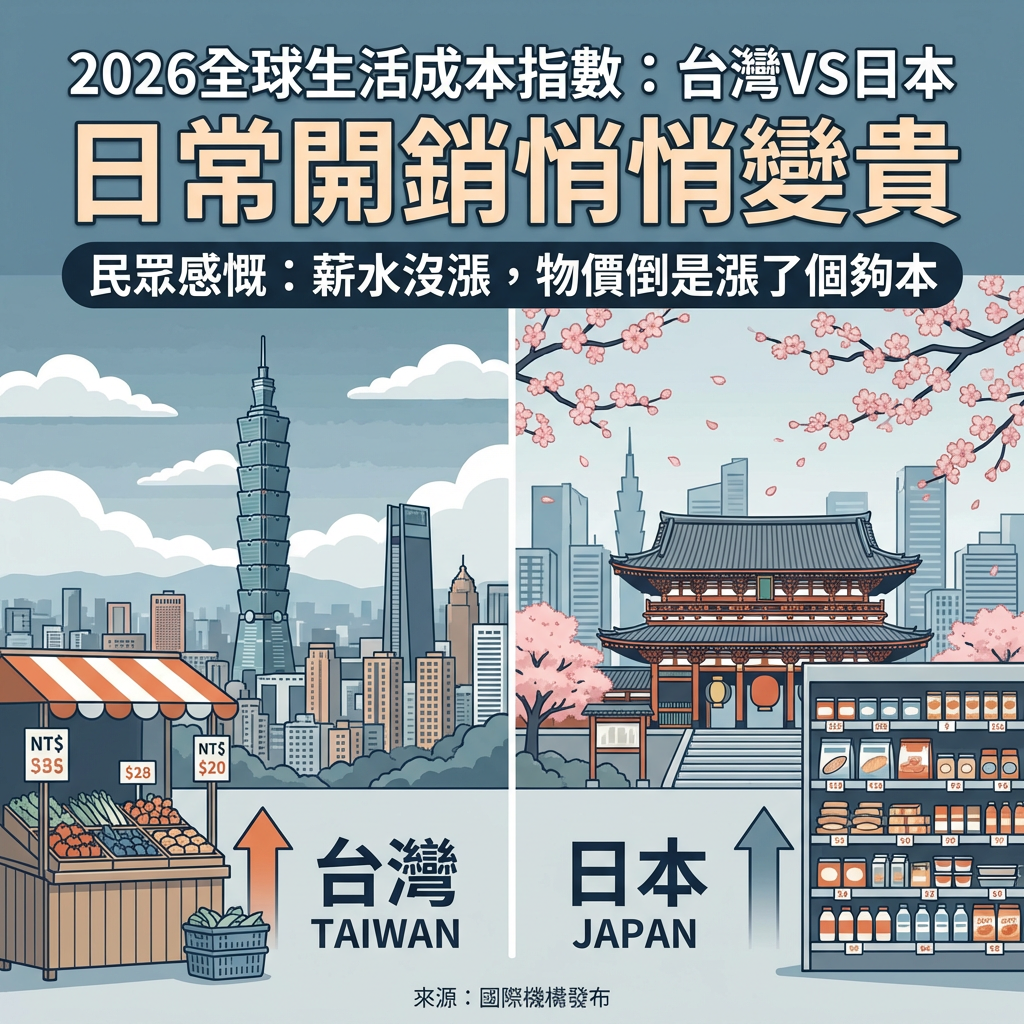 近日,一份由國際機構發布的「2026全球生活成本指數」震驚各界,其中一項驚人發現是,台灣的整體生活開銷在某些層面,竟然已經超越了長年以來給人高物價印象的日本。