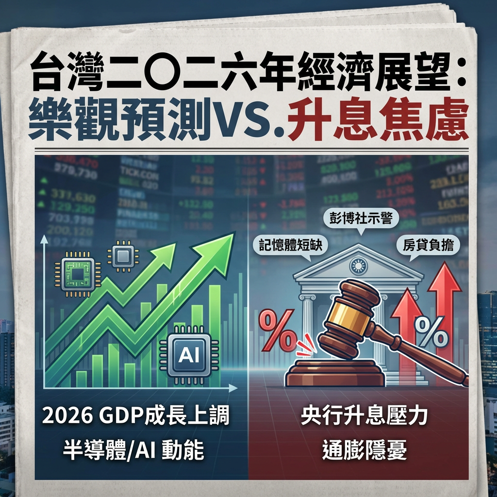 多數金融機構近日紛紛調升台灣二〇二六年經濟成長率預測,讓市場一片看好。然而,就在這波樂觀情緒中,彭博社等國際媒體卻直指,這同時也大幅提高了台灣中央銀行升息的機率,引發各界高度關注。經濟數據向好本該是令人振奮的好消息,但為何「升息」的預期,卻讓許多人心中感到一絲不安?這背後牽動的不僅是冰冷的數字,更關係著你我荷包的深淺與台灣經濟的未來走向。