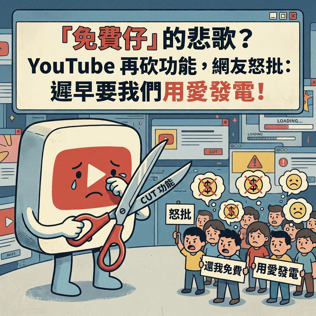 各位親愛的娛樂觀察家們,2026年02月15日這天,YouTube 又投下了一顆震撼彈,讓廣大「免費仔」們哀鴻遍野。根據 ezone.hk 的報導標題「挑戰用家底線?YouTube 又 Cut 免費功能!網民怒轟:遲早再 Cut…」,YouTube 再次傳出縮減免費功能的消息,這不只是一次功能調整,更像是在挑戰廣大用戶的忍耐極限。為什麼這件事會引起這麼大的反彈?因為它觸及了我們對網路「免費」模式的根深蒂固的想像,也反映了內容平台與消費者之間,那條越來越模糊的界線。