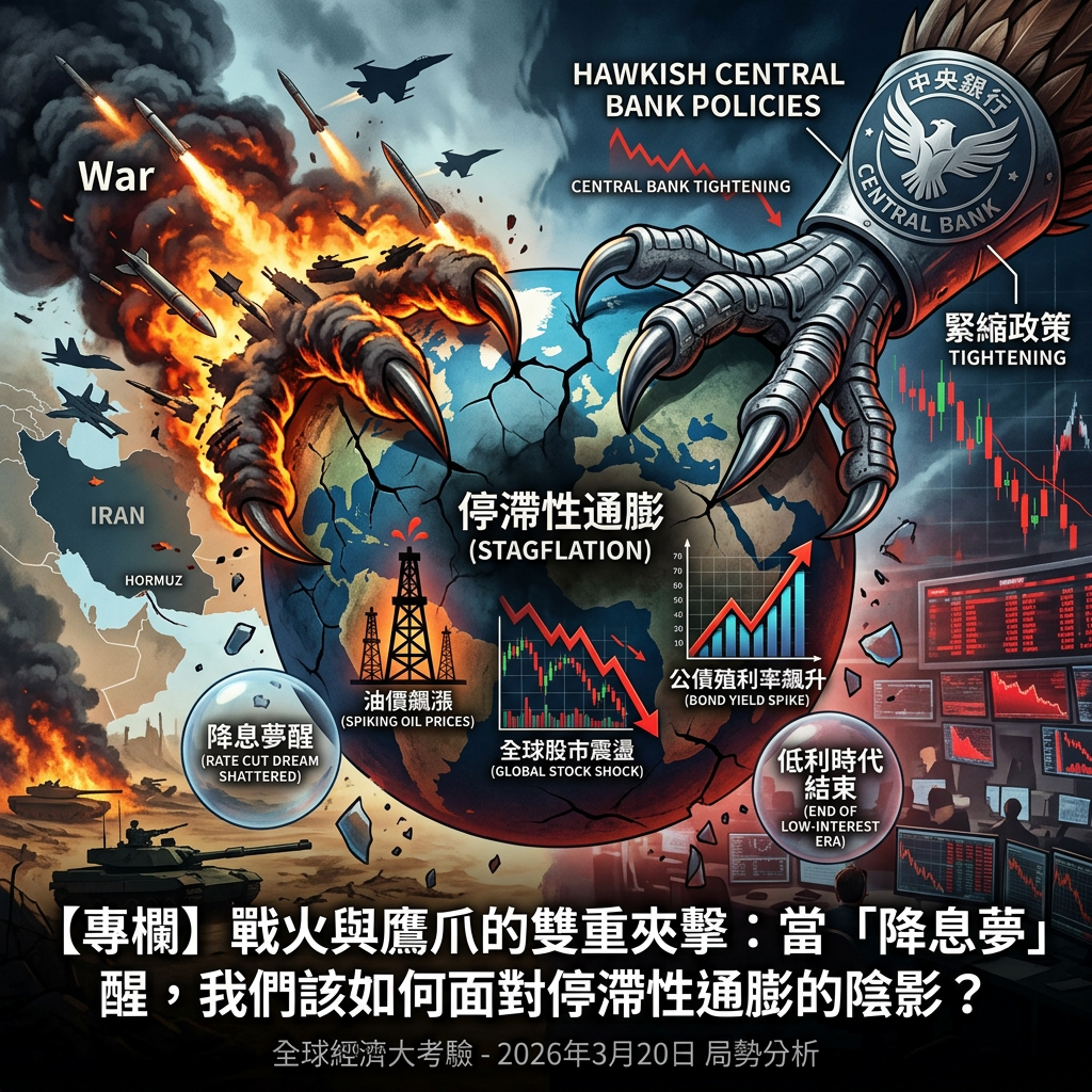 2026 年 3 月 20 日,對於全球投資人而言,無疑是極其漫長的一天。就在市場還沉浸在對下半年降息的樂觀預期時,中東的地緣政治危機與央行總裁楊金龍的一席話,卻無情地潑了一盆冷水。伊朗局勢的急劇升溫不只推高了油價,更讓原本看似平穩的通膨巨獸蠢蠢欲動。這不僅僅是國際新聞頭條,更是直接關乎你我荷包的警訊:低利時代的回歸恐怕遙遙無期。這件事為何重要?因為它標誌著全球經濟可能正從「軟著陸」的劇本,轉向「停滯性通膨」的硬仗。