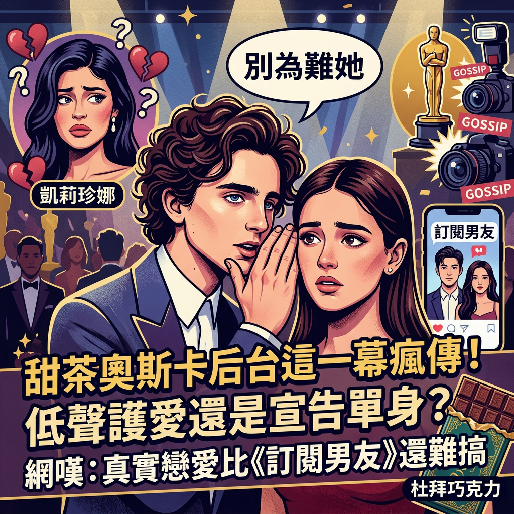 剛結束的奧斯卡頒獎典禮,大家除了關注小金人獎落誰家,更讓社群炸鍋的,竟然是我們「甜茶」提摩西夏勒梅(Timothée Chalamet)在台下的一句耳語。這幾天 Threads 上面滑下來,十篇有八篇都在討論他那張略顯憂鬱的臉,還有疑似與女友凱莉珍娜(Kylie Jenner)感情生變的傳聞。比起得獎名單,這種充滿謎團的「神級八卦」顯然更對大家的胃口。畢竟,看著男神疑似情傷,這劇本可比電影還要精彩,今天就來聊聊這樁讓全球少女心碎又燃起希望的羅生門。