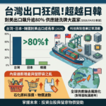就在2026年4月3日,一份關於全球貿易的最新數據震撼了市場:在美國實施「解放日」對等關稅滿一週年之際,台灣對美國的出口額竟然狂飆超過80%,一口氣超越了日本與韓國。這不僅僅是財經新聞上的一串漂亮數字,它背後宣告了一個殘酷卻又充滿機遇的事實——全球供應鏈的洗牌已經結束了「熱身賽」,台灣正以超乎想像的速度,成為這場新局面的最大贏家。為什麼這件事值得我們停下腳步,好好審視一番?因為這場貿易板塊的大挪移,正悄悄牽動著你我的薪資、投資與生活成本。