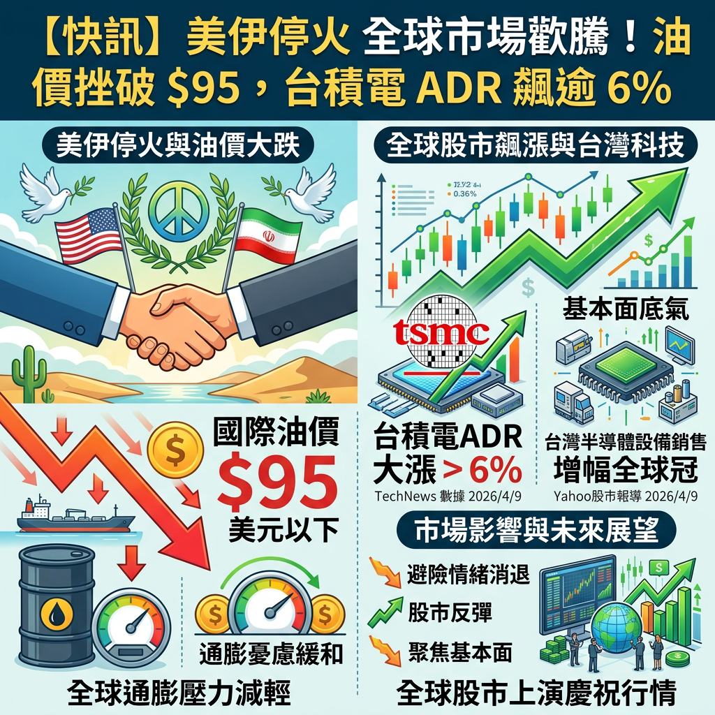 根據 Yahoo股市 在2026年4月9日的報導,這波停火不僅讓全球股市飆漲,更大幅緩和了市場對於通膨失控的憂慮。