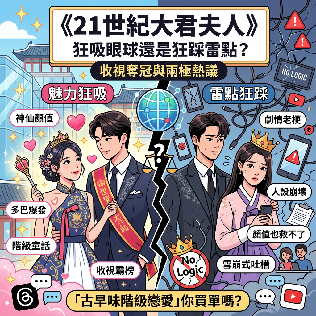 根據2026年4月21日風傳媒的報導 韓劇《21世紀大君夫人》好看嗎?收視奪冠評價卻兩極,網揪「7敗筆」狠酸:IU 邊佑錫也救不了,這部劇在光鮮亮麗的開局後,劇情似乎走向了讓人滿頭問號的發展。