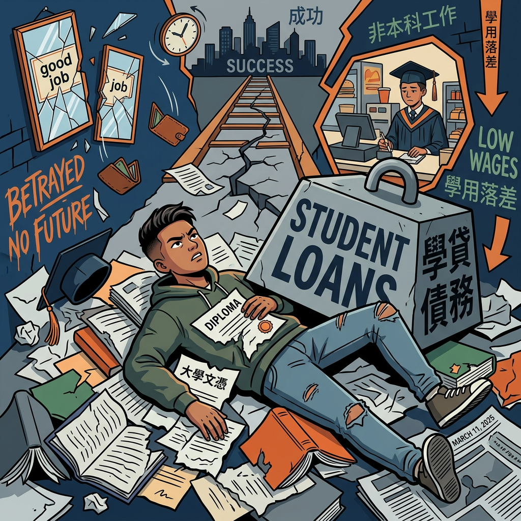 當你在大學花了四年鑽研專業,畢業後卻只能在零售店打工,或者當一個隨時可能被AI取代的測試員時,那種「我到底做錯了什麼」的無力感,才是最讓人窒息的。