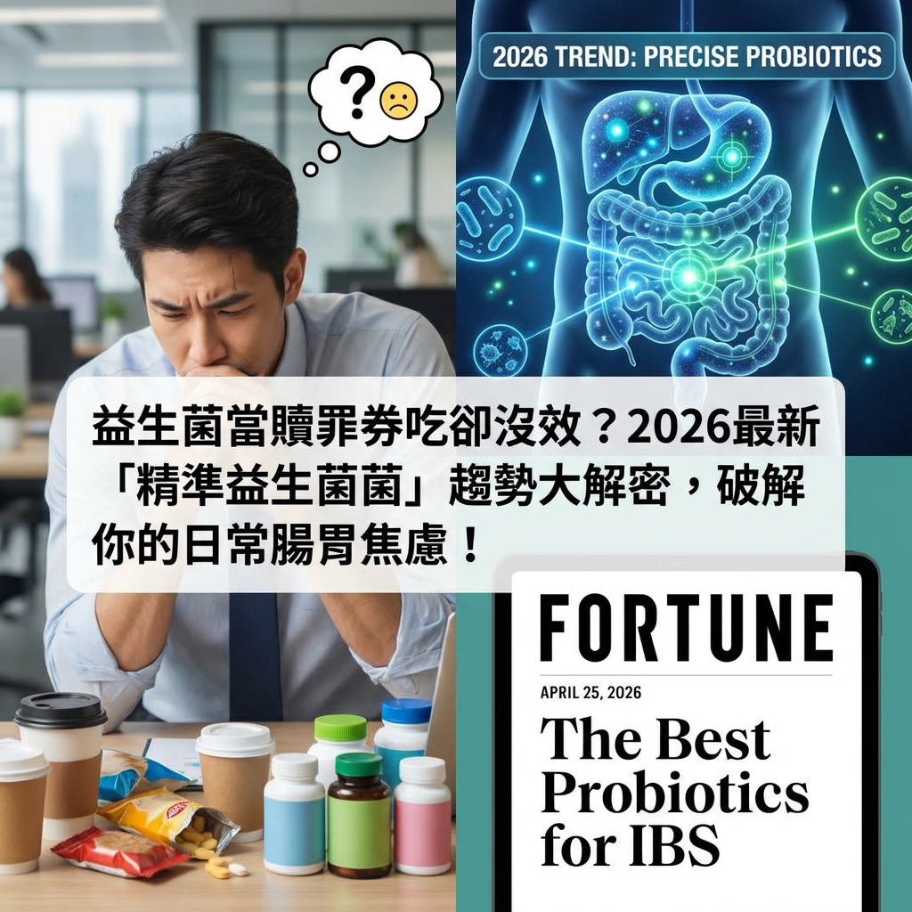 根據美國《財富》雜誌(Fortune)在 2026年04月25日 發布的最新專題The Best Probiotics for IBS (2026)指出,面對腸躁症(IBS)與複雜的腸道問題,傳統那種「一包打天下」的盲目補充觀念已經漸漸過時。