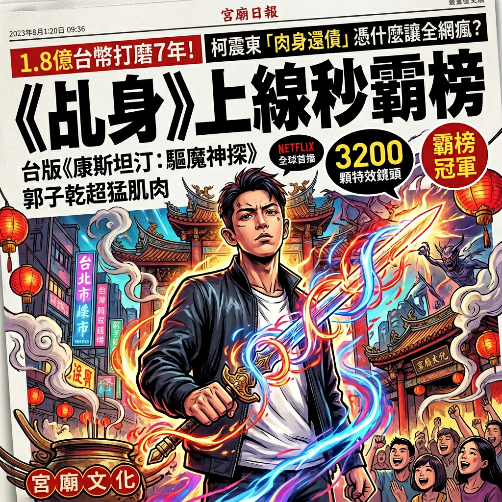 這幾天大家點開Netflix,是不是都被那個拿著法器、滿臉桀驁不馴的柯震東給洗版了。沒錯,號稱台版《康斯坦汀:驅魔神探》的《乩身》終於在2026年4月9日熱騰騰上架。這部戲可是讓大家等了足足7年,一開播就以秋風掃落葉之姿空降排行榜冠軍。到底這部號稱耗資1.8億台幣的東方奇幻大作,憑什麼讓大家心甘情願
