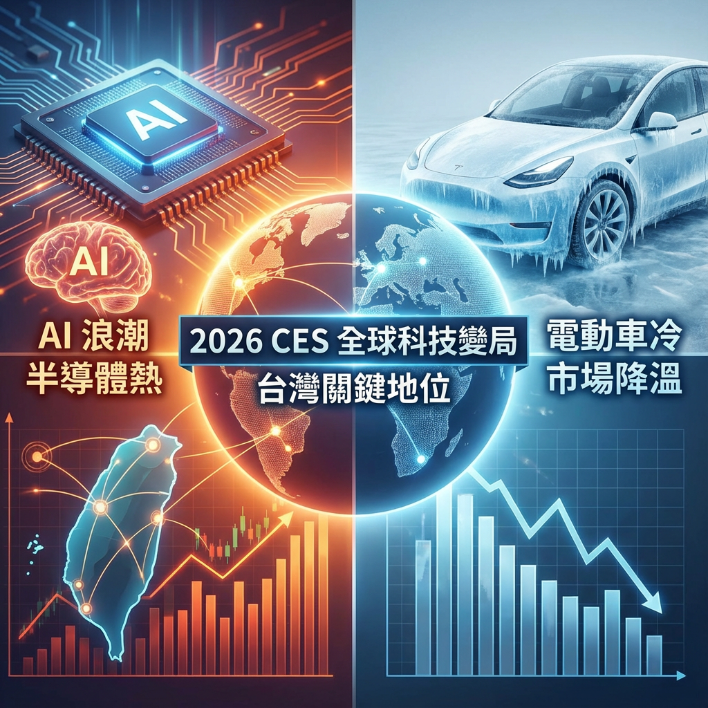 2026年初,美國拉斯維加斯消費性電子展(CES)再度拉開全球科技產業的序幕,今年展會的核心無疑是人工智慧(AI)與電動車兩大熱門主題。當各家大廠爭相展示AI如何在日常生活中無所不在、汽車如何變得更智慧的同時,市場也浮現出對於電動車發展的隱憂。這場科技盛宴不僅是未來趨勢的預覽,更是台灣身為全球科技關