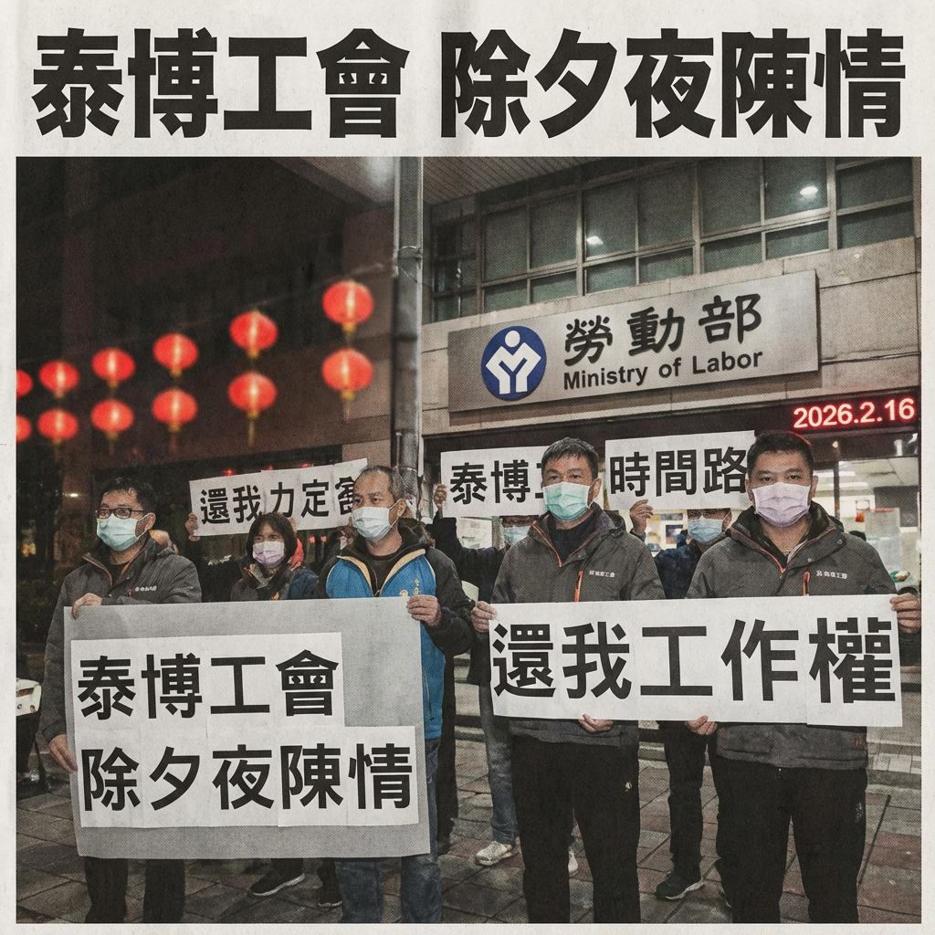 當企業與工會「槓」上除夕夜:泰博事件,不只是一則新聞,更是台灣勞動的縮影年味還沒完全散盡,本該是家人圍爐團圓的除夕前夕。有一群人,卻無法安坐家中。2026 年 2 月 16 日,正值小年夜,泰博企業工會的成員們,再次選擇來到勞動部前陳情。這畫面讓人心頭一緊,為什麼在這樣一個特別的日子,勞工們還要站出