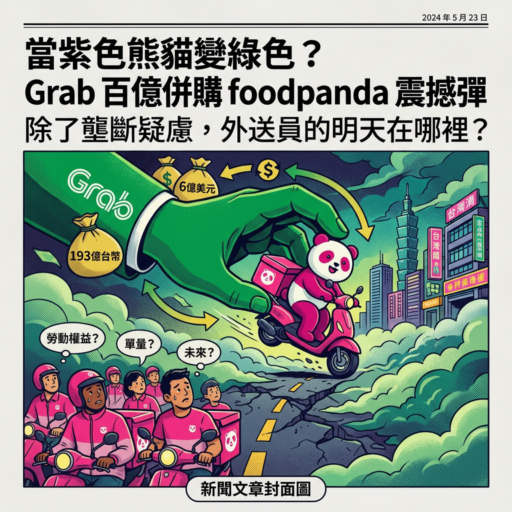 昨(25)日,台灣生活消費市場投下了一顆震撼彈。來自東南亞的叫車與外送巨頭 Grab,傳出計畫收購 foodpanda 的台灣業務。這不僅僅是一樁商業併購案,更是牽動全台數百萬消費者荷包與數萬名外送員生計的關鍵轉折。全台外送產業工會(全總)隨即發出強烈示警,擔憂這場交易將重演新加坡的「壟斷劇本」。為