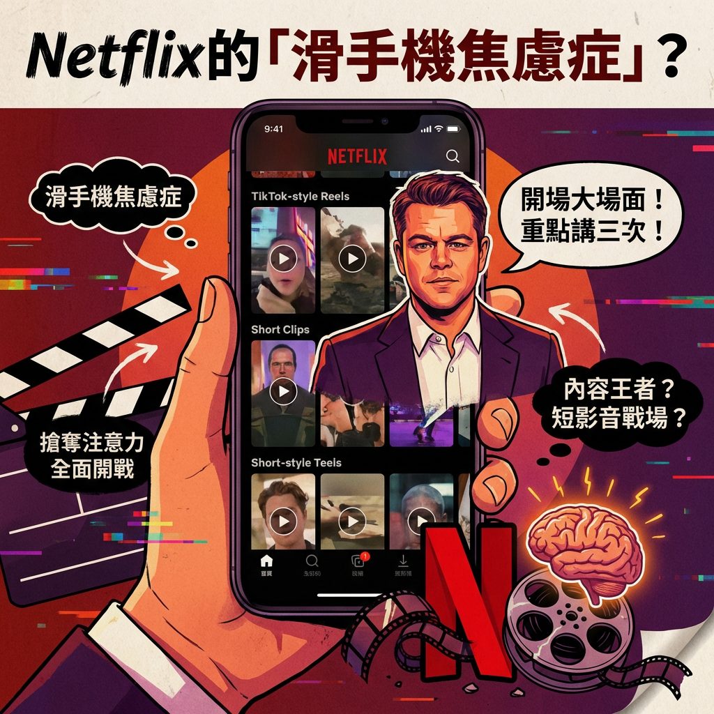 最近Netflix的新聞多到讓人有點暈,從財報、併購消息,到自家APP介面都要大改版,這些看似獨立的事件,其實都在透露一件事:串流巨頭Netflix,為了留住你寶貴的注意力,真的是拼了!特別是好萊塢巨星麥特戴蒙(Matt Damon)最近不小心說溜嘴的「Netflix潛規則」,配上APP準備學Tik