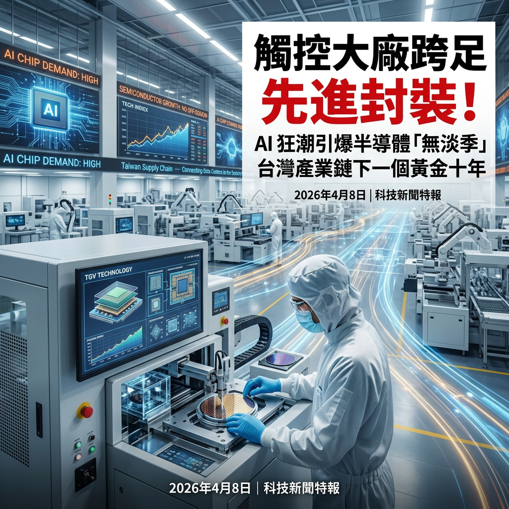 2026年4月8日的台灣科技圈,瀰漫著一股強烈的跨界與擴張氛圍。隨著中東地緣政治局勢稍稍趨緩,加上台積電法說會即將登場,市場對半導體的熱情再次被點燃,帶動相關科技類股與 ETF 績效狂飆。然而,真正值得一般讀者留意的,不只是股市數字的跳動,而是傳統科技大廠正在進行的底層大換血。今日最震撼業界的消息,